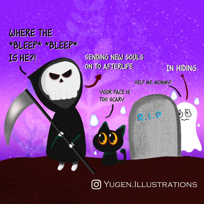 What happens when a ghost runs away? It resulted in a VERY unhappy Reaper, aka Sodum. IG: instagram.com/yugen.illustra… #illustration #kawaii #cute #digitalart #art #cutereaper #cutecat