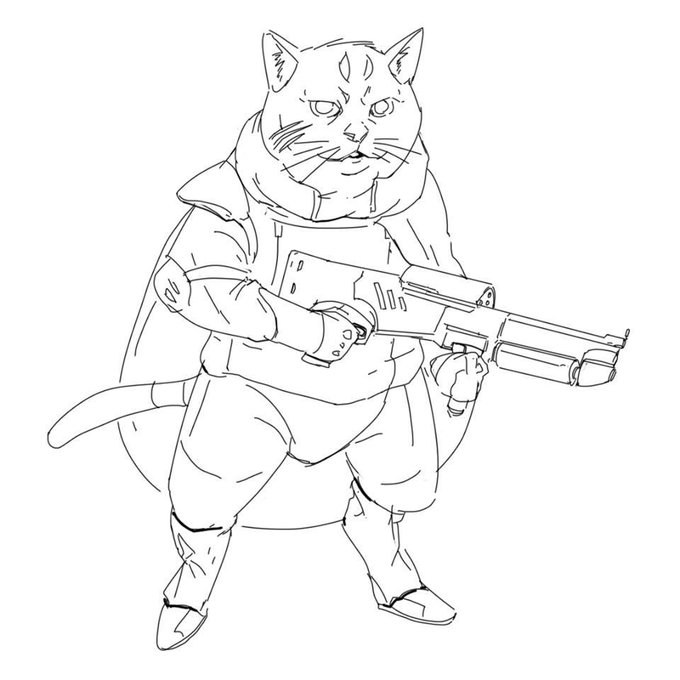 Halo and Destiny sci-fi inspired cat shooter, practicing how to draw clean straight lines and curves. #Artists #artmoots #cat #CatsOfTwitter #scifi #scifiart #sketchbook #drawing #videogames #soldier #cute #animals #cutecat #digitalart #digitalillustration #sketch #inktober