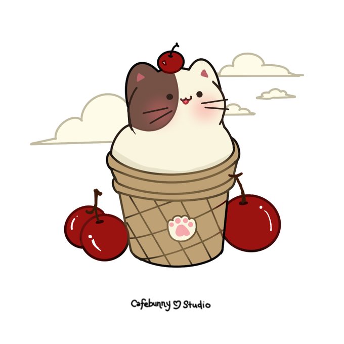 Vanilla and chocolate cloud kitty with cherry on top! Been craving for some ice cream, but it's too cold 🍦 What's your favorite ice cream or topping? #ArtistOnTwitter #cuteart #procreateart #kawaiiart #cutecat #cat