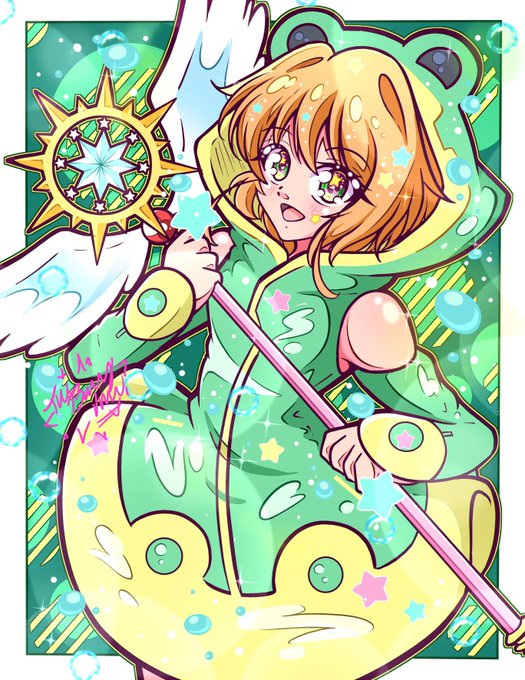 Today for #cutegirltober2022 is froggy so here’s Sakura in her froggy rain coat #Artist #ArtistOnTwitter #FANART #イラスト #CardcaptorSakura #カードキャプターさくら #cutegirltober
