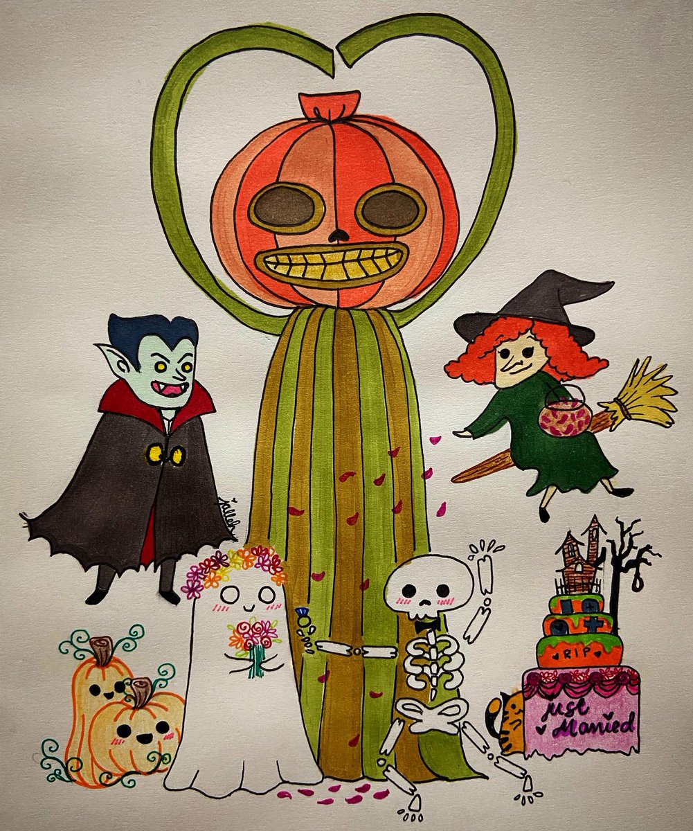 Day 4: Bones, One powerful pumpkin, Haunted House, Knot Hello to my new moots! 🥰💕✨ #cwinktober #otgwspookyprompts #spooktoberbyal #inktober #inktober2021 #art #arttwt #artist #artwork #artph #drawing #halloween #overthegardenwall