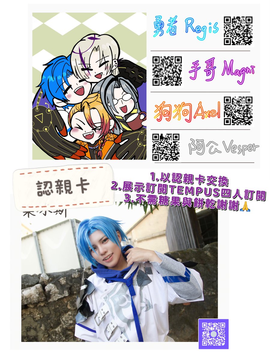 🌟🌟認親卡🌟🌟 這次想多宣傳HOLOSTARS EN的寶藏公會TEMPUS的四人 所以印了四人小卡和我的勇者cos照www 數量不會太多,有興趣的朋友再主動交換索取! 有認親卡可以直接換,沒有認親卡就出示訂閱即可! #CWT62 #WorkofAlt #MagniOpus #ArtXel #VespART