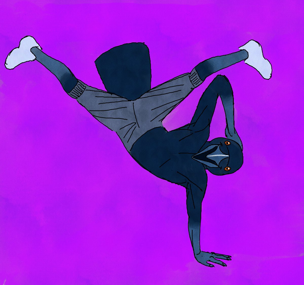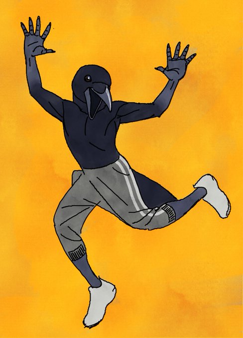 more scratchy scribbles! he really enjoys dancing! (though he isn't the best at it...) #dnd #dndart #dndoc #cyberpunk #cyberpunkart #cyberpunkoc #kenku #furry #avian