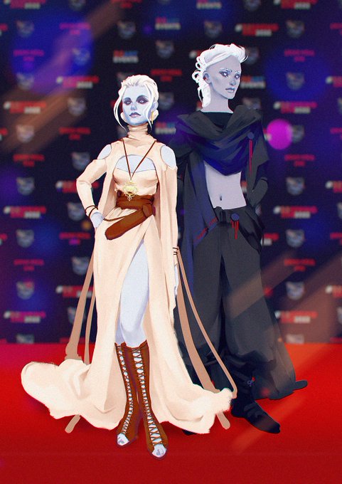 #endcredits of #d2springzine2022 : lead in Star Fates Mara Sov in classical dress from some desert planet and her +1 for today, Jon, slightly uncomfortable in the limelight! @D2ArtEvents thank you! #Destiny2 #DestinyArt #Destiny2Art pic.twitter.com/oDZ4Cqig2S twitter.com/D2ArtEvents/st…