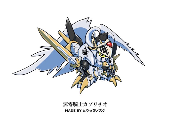 #dach聖騎士軍vsNOK魔王軍 副賞イラスト『禊』! 聖騎士軍三人目のキャラクターは! とりっぴノスケさん@torippinosuke25 の 【聖騎士軍】翼零騎士カプリチオ バーサルベースの翼の騎士!空を駆け巡る姿が目に浮かぶ、各所にアイデアがあふれる作品です!