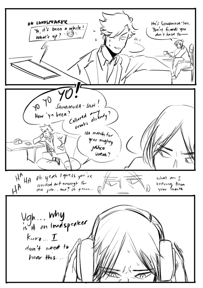 Headphones exist, you know. (Part 2 of these embarrassing pair... that phone call, man.) #kurodai #daichisawamura #kurootetsurou