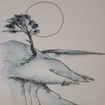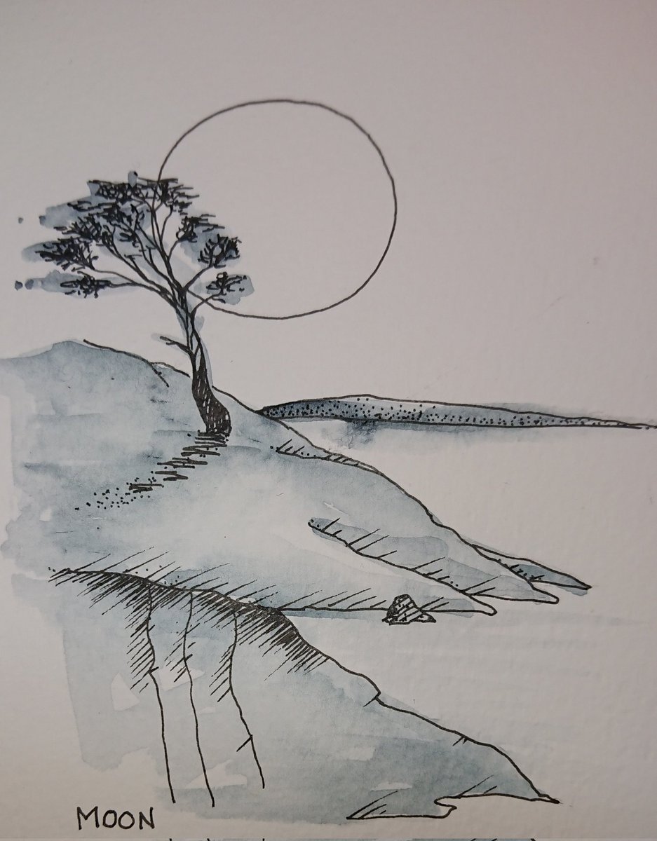 #dailydrawing2021 no 291 MOON today's prompt Uninspired... Same old pine in the archipelago #inktober2021 @CobbinSteve1 @andykaitken