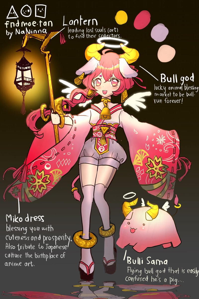 Day16) Bull god fndmoe-tan! She will fight all the bear market and lead us to eternal heaven full of cuteness and prosperity! #dailydrawingchallenge #100日チャレンジ