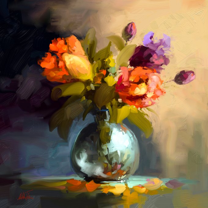 ~ Tulips still life ~ Digital oil painting New Dailypainting #dailypainitng #artrage #ArtistOnTwitter #painting #art