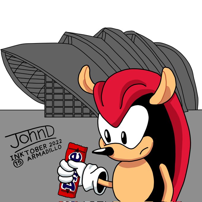#inktober2022 - 15 - Armadillo #armadillo #mighty #mightyarmadillo #chaotix #knuckleschaotix #sonic #sonicthehedgehog #glasgow #secc #sec @SECGlasgow @SEGA #sega #dime #dimebar #daim #daimbar @MDLZ #HarryEnfield @inktober #inktober