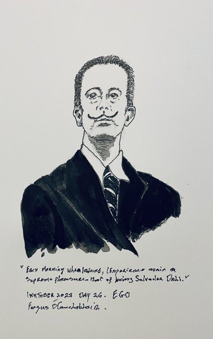 Inktober challenge Day 26 Ego. I chose Salvador Dali a huge ego but a great contribution to art and culture #inktober2022 #inktober2022DAY26 #salvadordali #dali #fergusoconchobhair #penandink #wicklowartist #drawing