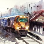 A station Watercolor Today, I painted a train station with watercolor. I want to go to travel. [YouTube] youtu.be/OO54daJ4DII #watercolor #danielsmithwatercolors #SaundersWaterford #aquarelle #train #trainstation #traintravel #travel #travelbypainting #travelbywatercolor