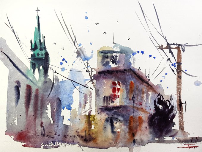 A street direct Watercolor Today, I painted a street with direct watercolor. ⠀ [YouTube] youtu.be/HT1khyTrdso ⠀ #watercolor #danielsmithwatercolors #SaundersWaterford #aquarelle #street #directwatercolor #travel #travelbypainting #travelbywatercolor #drawingtalk