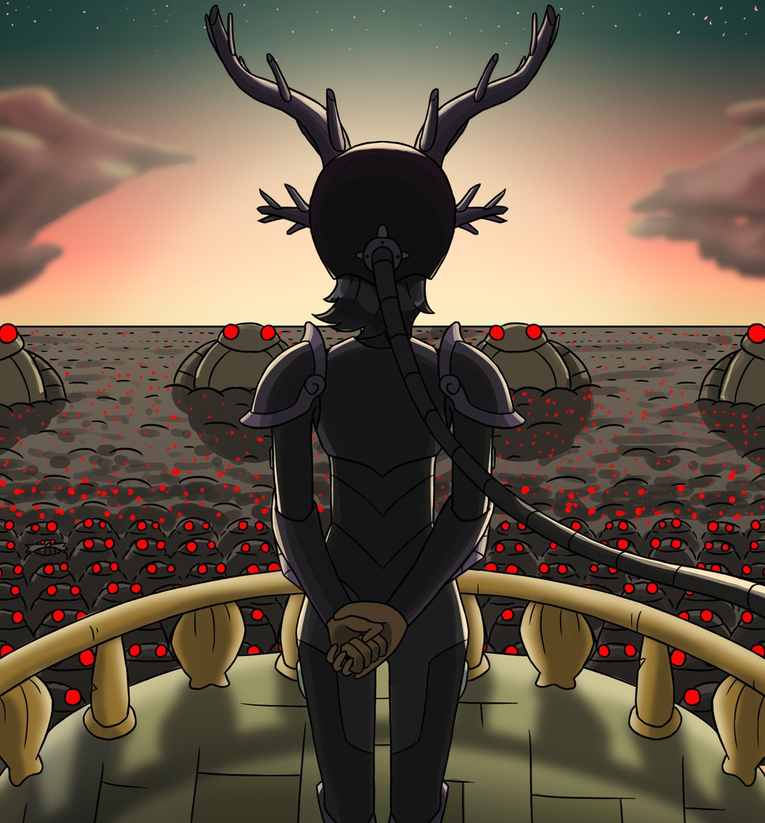 Progress on my Darcy scythe! I just finished the shell and I have the red part of the blade painted! Time to work on the eye! #amphibia #amphibiafanart #darcy