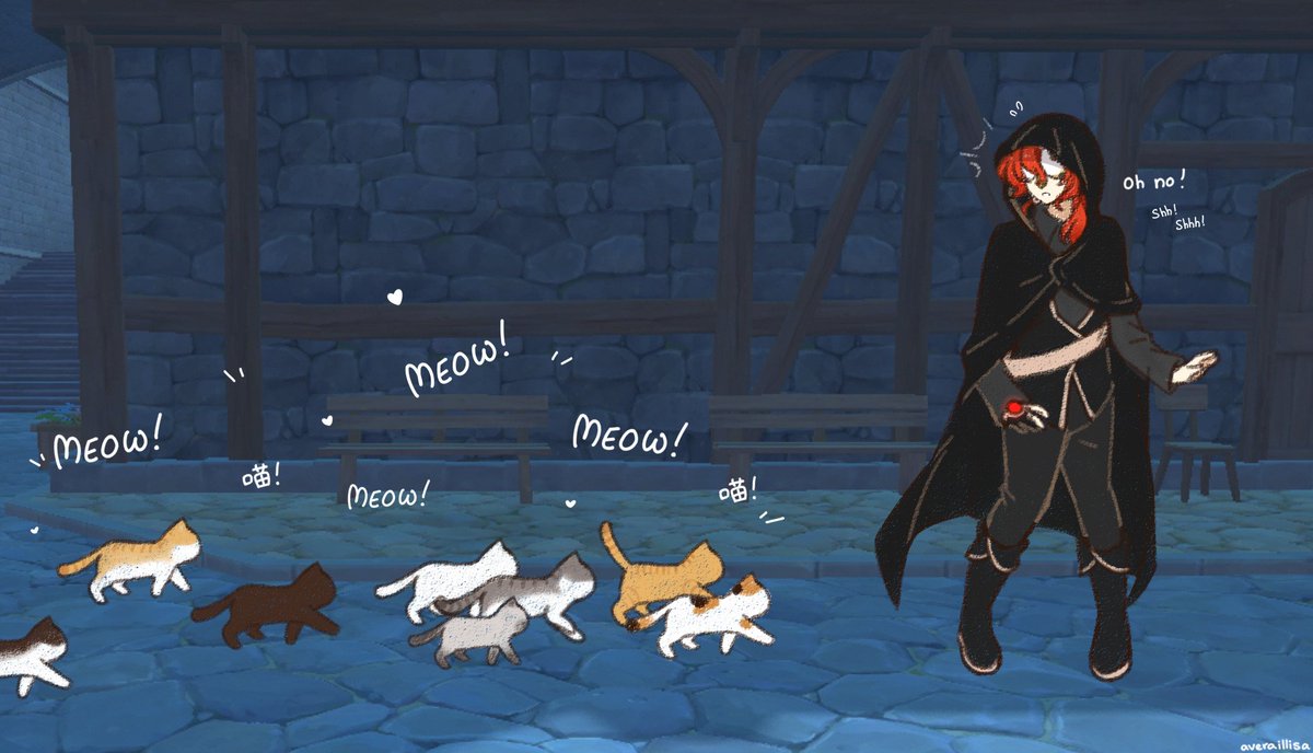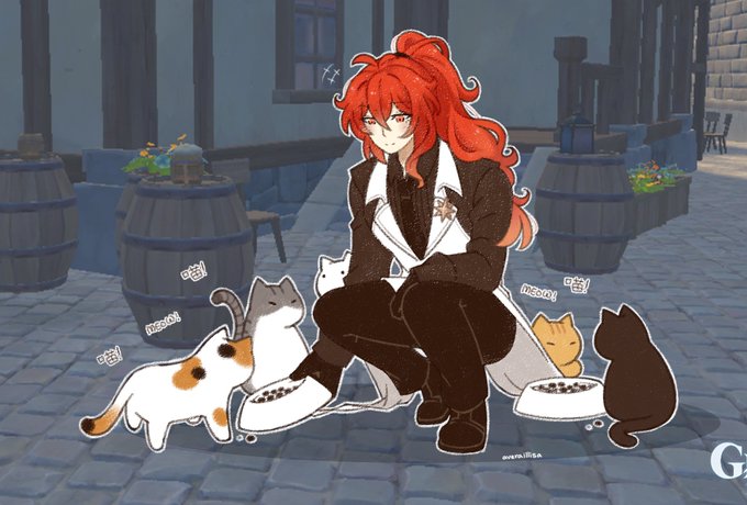 random hc that Diluc likes to feed the stray cats of Mond and now they threaten to blow his cover everytime he goes vigilante owo #genshinimpact #原神 #Diluc #darknighthero
