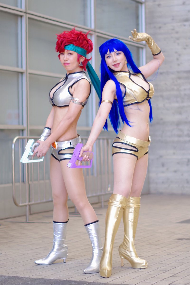 ワンフェスの思い出😍 ディーラーこげまぐろ (@kogemaguro )さんで ダーティペアのフィギュアを ダーティペアが売り子 してました🙋♀️✨ 衣装制作🩱・ケイ:@szk0121 撮影📸: @brabhamBT46B さま 武器制作🔫:@Plum_T_M さま #Aki_cosplay #dartypair #あいらxAki #WF2022S