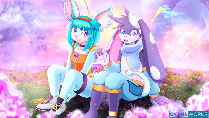 Patreon rewardie for @DashieIow Their fonewearl Dashie u0u holding a very cute bun Dash! #blueburst #bunny #dash #dashie #digitalart #drawing #fanart #phantasystar #phantasystaronline #pso #psobb #rabbit #pso2 #art