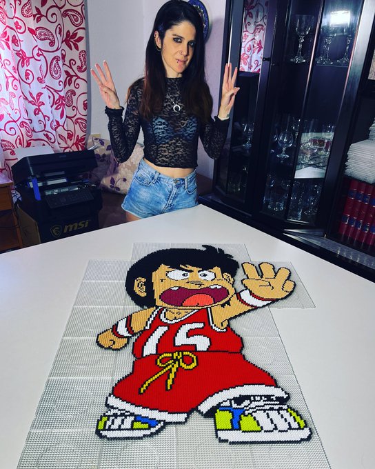 Tres Puntos Colega 🔥 Empiezo a dar color ☺️ Espero que os guste 💫 Feliz día ☀️ #beads #pixelart #chichoterremoto #dashkappei #anime #fanartanime