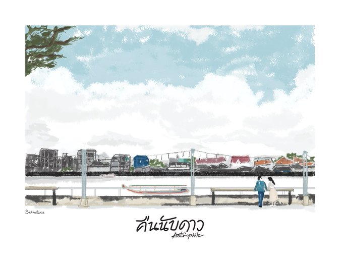ลองเพ้นท์เป็นภาพ landscape ที่ชอบในอีพี 10 องค์ประกอบสวยกำลังดี วิวแบบนี้และได้ยืนคุยกับคนที่ชอบ ☺️ เขินนนนอ่ะ อยากโดดลงน้ำ 55555 #คืนนับดาวEP10 #bbrightvc #davikah #astrophilefanart