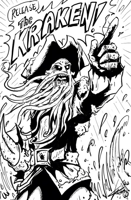 #inktober2022day17 “Salty” - hard to imagine anything more salty than #DavyJones #inktober #inktober2022