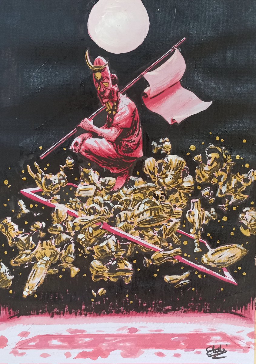 #inktober #inktober2021 #Day03 : "The Kids Aren't Alright" by Fall Out Boy . 10.5 by 14.5 inches Ink, acrylic and gouache on watercolour paper . "...the black banners raised As the crooked smiles fade Former heroes who quit too late Who just wanna fill up the trophy case again"