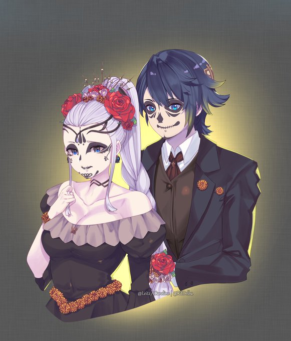 Collab time! Eir and Alfonse from FEH as Catrines. Today is Day of the Dead in my country!! Right about time! @Leitz_ACaroline made lineart and flat colors, I went for the sketch and lighting, compliment her! 😌 #FireEmblemHeroes #fanart #DayOfTheDead #DiaDeMuertos