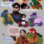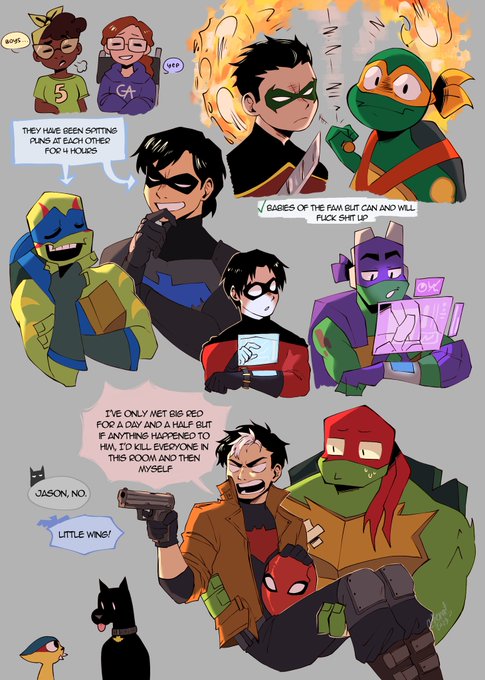 turtle teens vs bat boys (+honorary sisters n pets) #rottmnt #rottmntfanart #dccomics #DCU #Batfamily