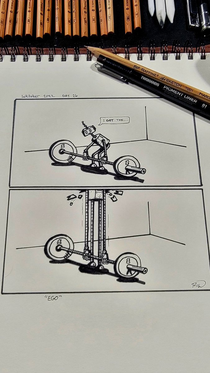 @inktober 2022 Day 26, "Ego" Well, at least the Unfamiliar lifted with its legs... #inktober #inktober2022 #deadlift #ego #somethingunfamiliar