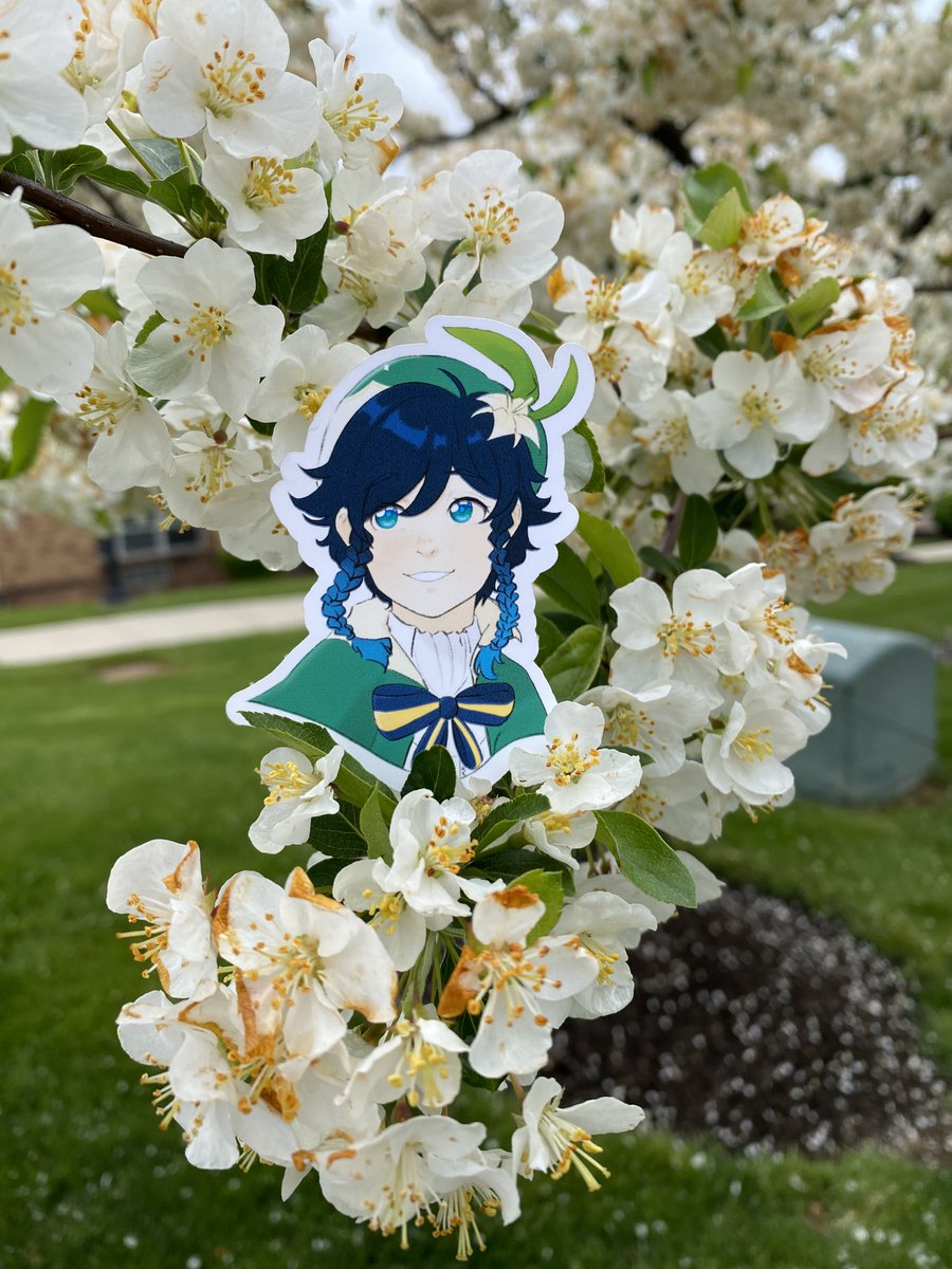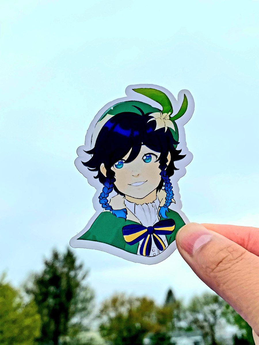 From the heavens, Venti descends with a bottle of wine and a basket of apples. There will be a 20% discount on grand opening! #stickers #sticker #art #stickershop #stickerart #streetart #design #smallbusiness #decals #stickeraddict #genshinimpact #venti #genshinimpactfanart