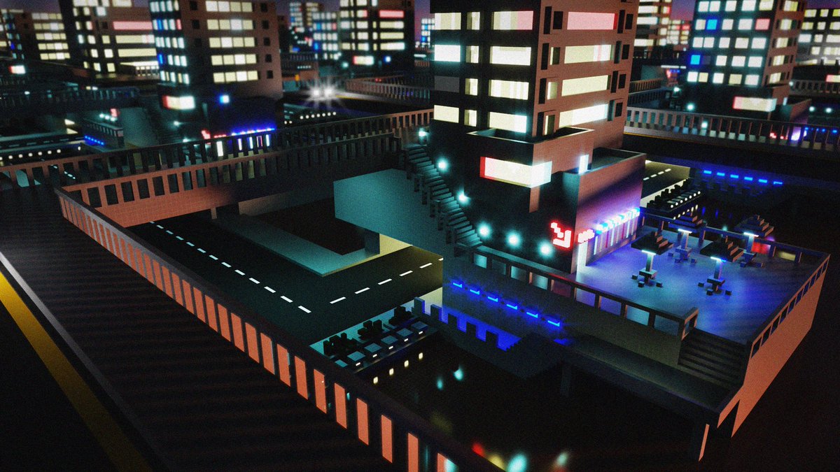 Pues ya estaría el metaverso cyberpunk de hoy… #cyberpunk #city #voxelart #sandbox #decentraland #voxel