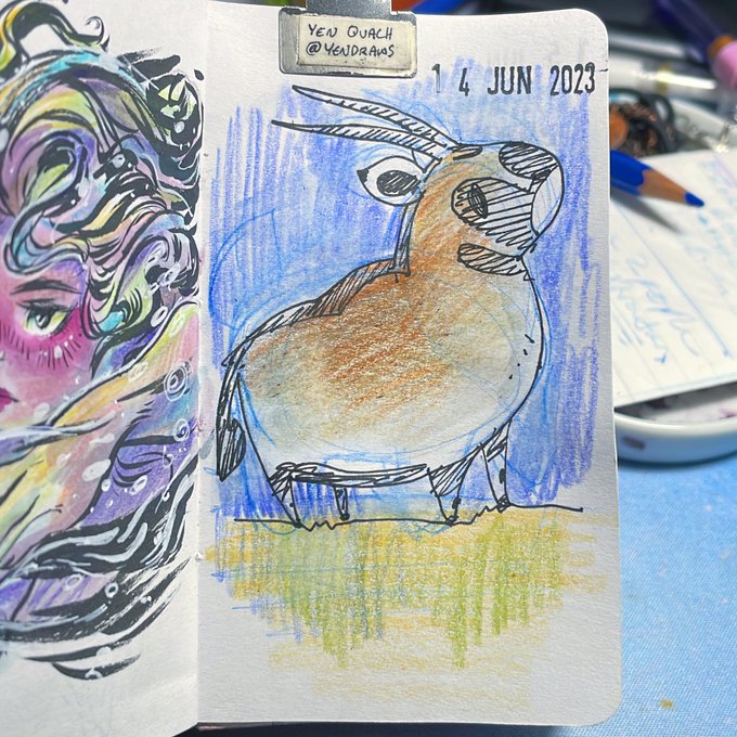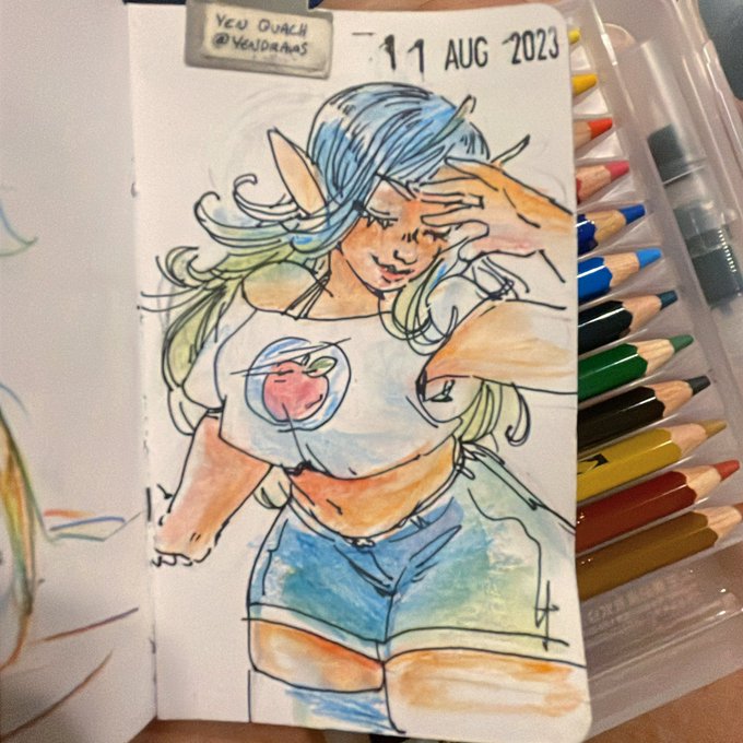 Apples- trying out a little travel lot of uni watercolor pencils! #illustration #draweveryday #ded2023