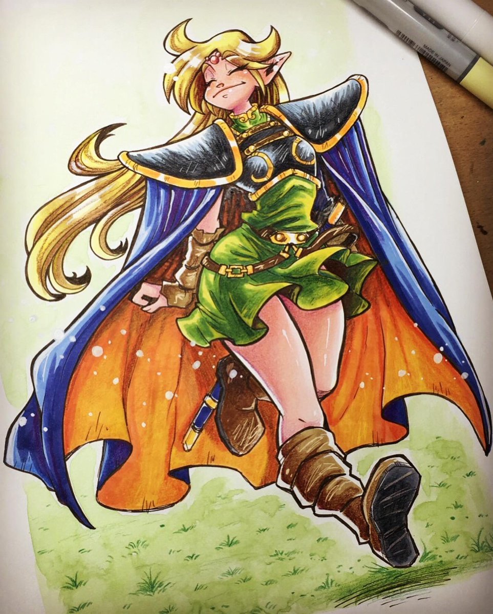 Fanart of Deedlit from Lodoss War 🧝♀️ Made with alcohol based markers, Prismacolour pencils and watercolors. #deedlit #lodosswar #fanart #ohuhu #copic #finecolour #prismacolor #traditionalart