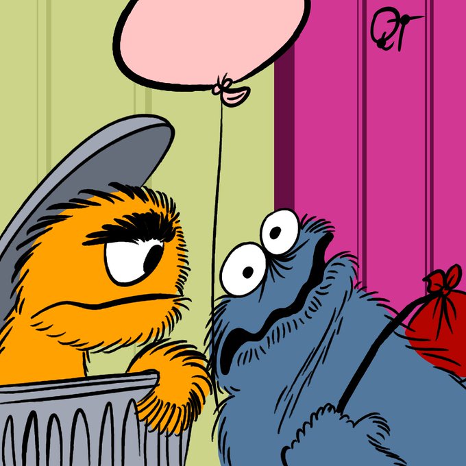 Another screenshot redraw I was prompted! #sesamestreet #oscarthegrouch #cookiemonster #muppets #fanart #deeisbrowsing #cartoon