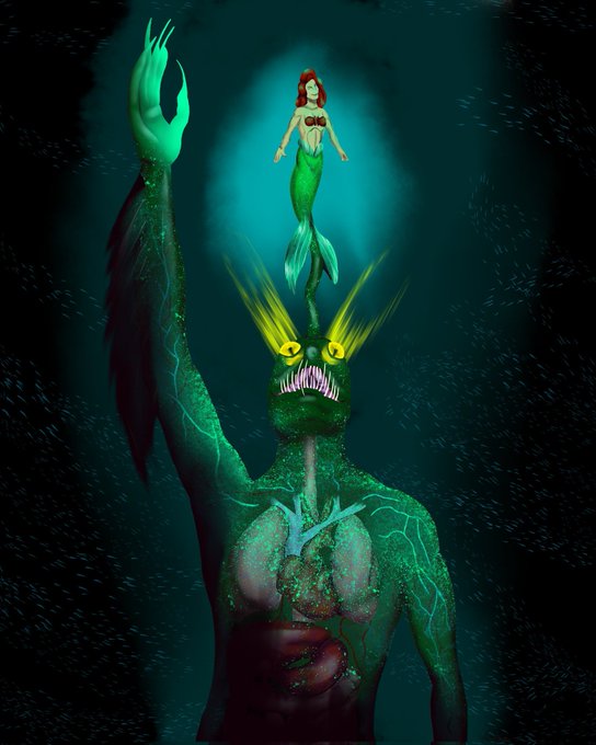 Week 3 Deep Sea Dragon Mermaid #MerMay #MerMay2023 #MadeWithWacom #WacomMerMay2023 #DeepSea #Horror