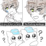 Alban with Quilldren: 🥰 Alban with Takaradachi: 😠 Inspired by Ike saying he trusts Alban with his Quilldren We just want to get paid bro 😭 #AlbanKnoxArt #DeezKnox #YikesMemeland (Thanks for the idea @/honeybleuart LOL)