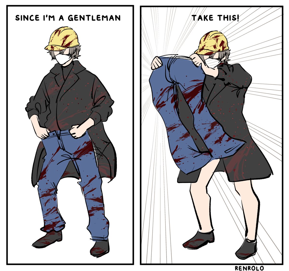 ทำเองก็เช็ดเองนะ 🎭 : ....help me🥺 🧢 : You did this Tenchou. Please clean everything up before the Konbini opens ಠ_ಠ! #AlbanKnoxArt #deezknox twitter.com/alban_knox/s…