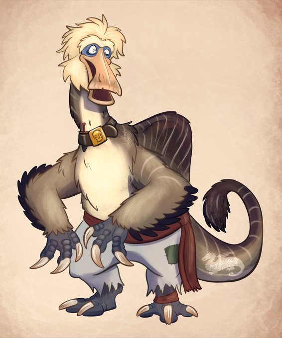Shaggy Jack the Deinocheirus! He’s been marooned for a few years, so try to use small words. . #deinocheirus #Pirate #characterdesign #characterart #dinosaur #PrehistoricPlanet #originalcharacter #Procreate #ArtistOnTwitter