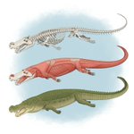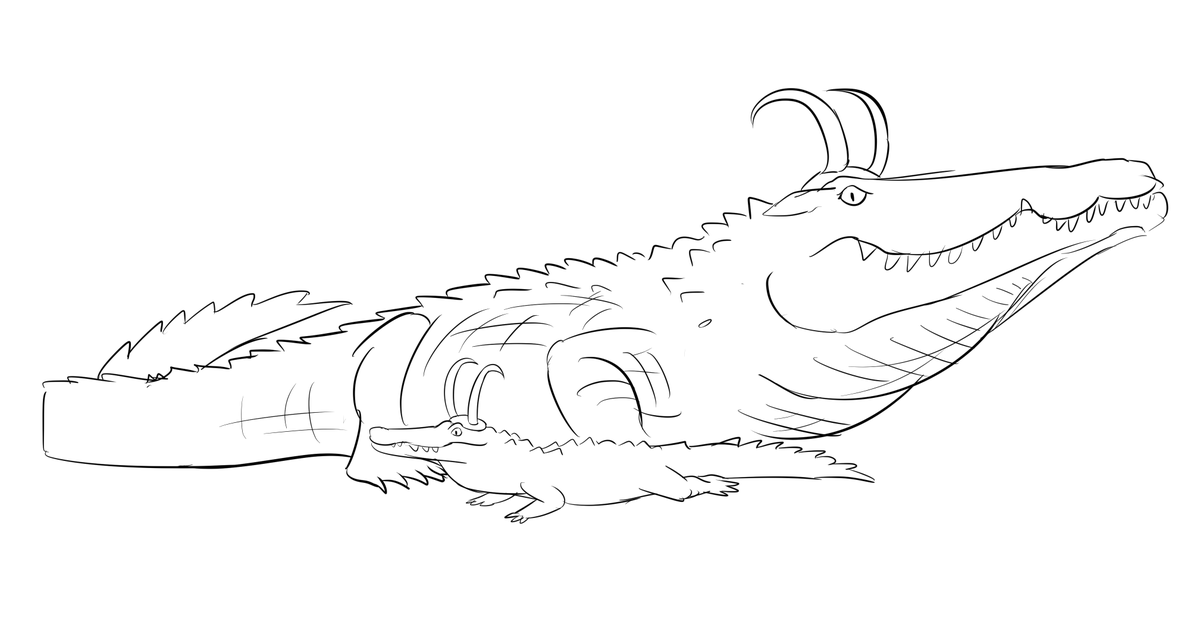 Sketches from today’s #paleostream. # #icthyostega, #thylacosmilus, #titanoboa and #deinosuchus. #paleoart