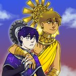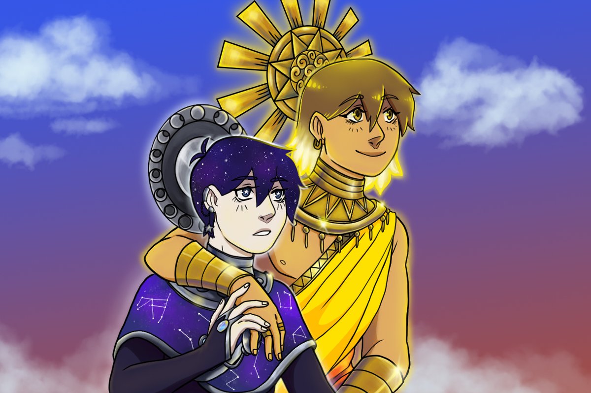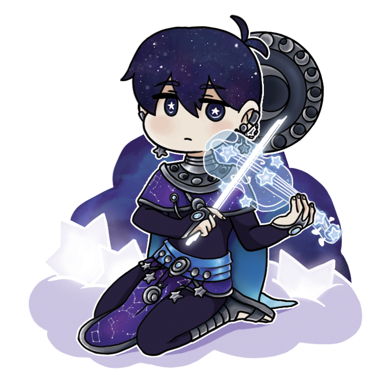 More Deity AU with Suntan Kel is enjoying the sound from Sunny's celestial violin as the sun sets and the stars are born. Sometimes Sunny's space hair will show supernova's or bursts of color from galaxies, especially within Kel's vicinity. #OMORIFANART #deityau #omorisuntan