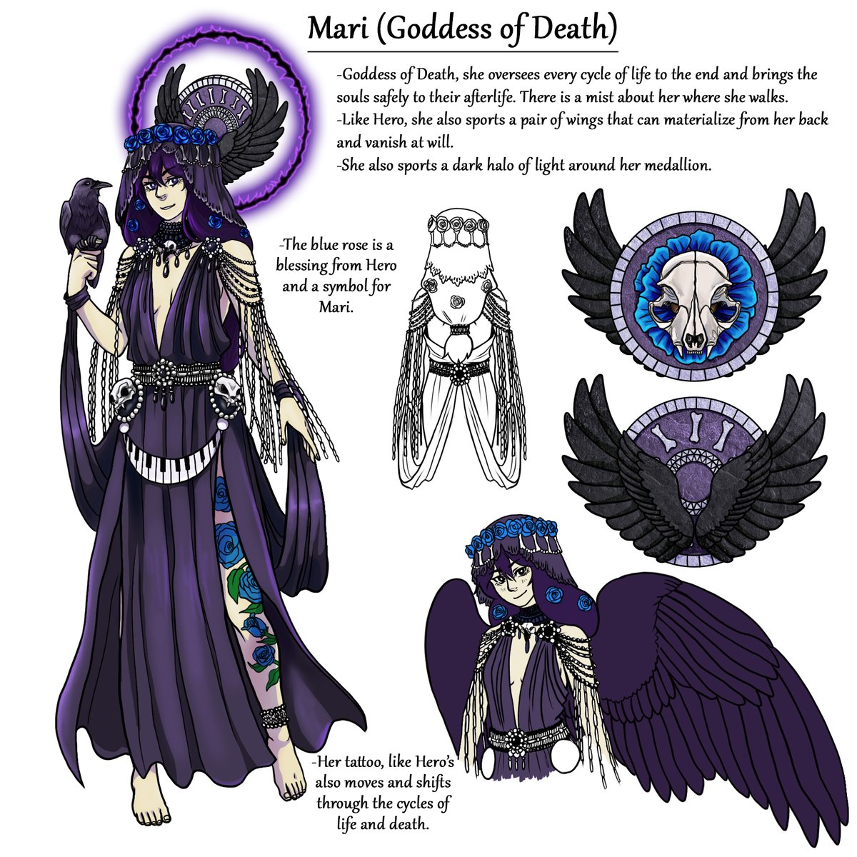 Last two designs for the Deity AU. Mari, the Goddess of Death and Aubrey, the Goddess of the Water #OMORI #OMORIFANART #deityau