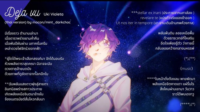 ✨Deja Vu (thai ver.) ✨ #VioletAtelier #DejaVu #UkiVioleta เนื้อไทยสำหรับการคาราโอเกะอย่างมีชั้นเชิงค่ะ 5555555555 มีเนื้อบางส่วนที่อาจจะลงล็อกคำไม่ได้ดีนักเพราะหาสัมผัสดีๆไม่เจอ ใครอยากเสนออะไรแจ้งได้นะคะ ส่วนใครร้องแล้วแท็กเรียกไปฟังได้ค่ะ♥