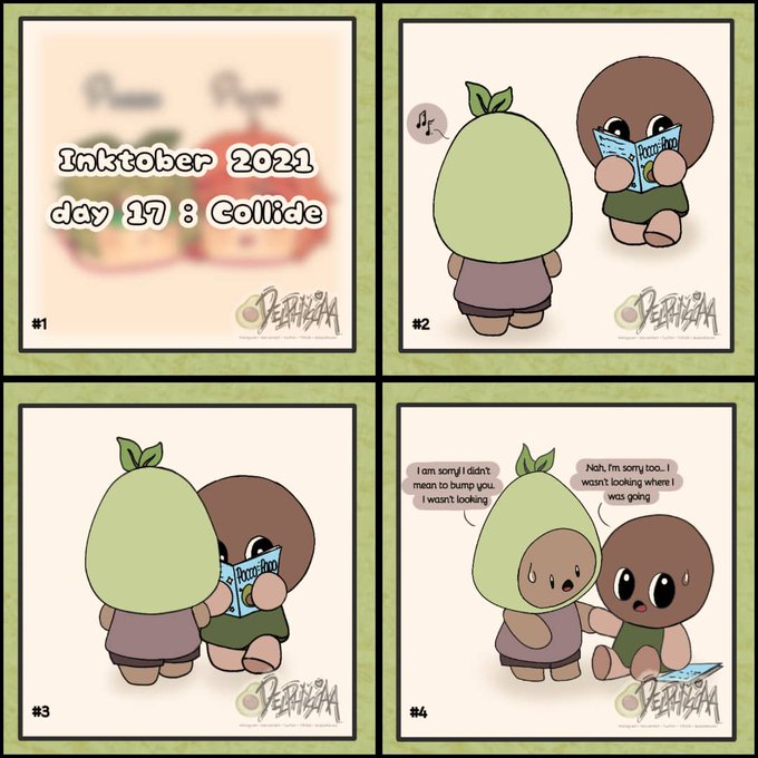 🎃 Inktober_17 : Collide 🎃 . I don't have much of a time today and so I decided to do something simple.. But too simple is no good... So I made a simple comic kinda thing for both Pocco and Popo~ Don't forget to say hi to them 😉 . #inktober2021day17 #delphyscaa #inktober2021
