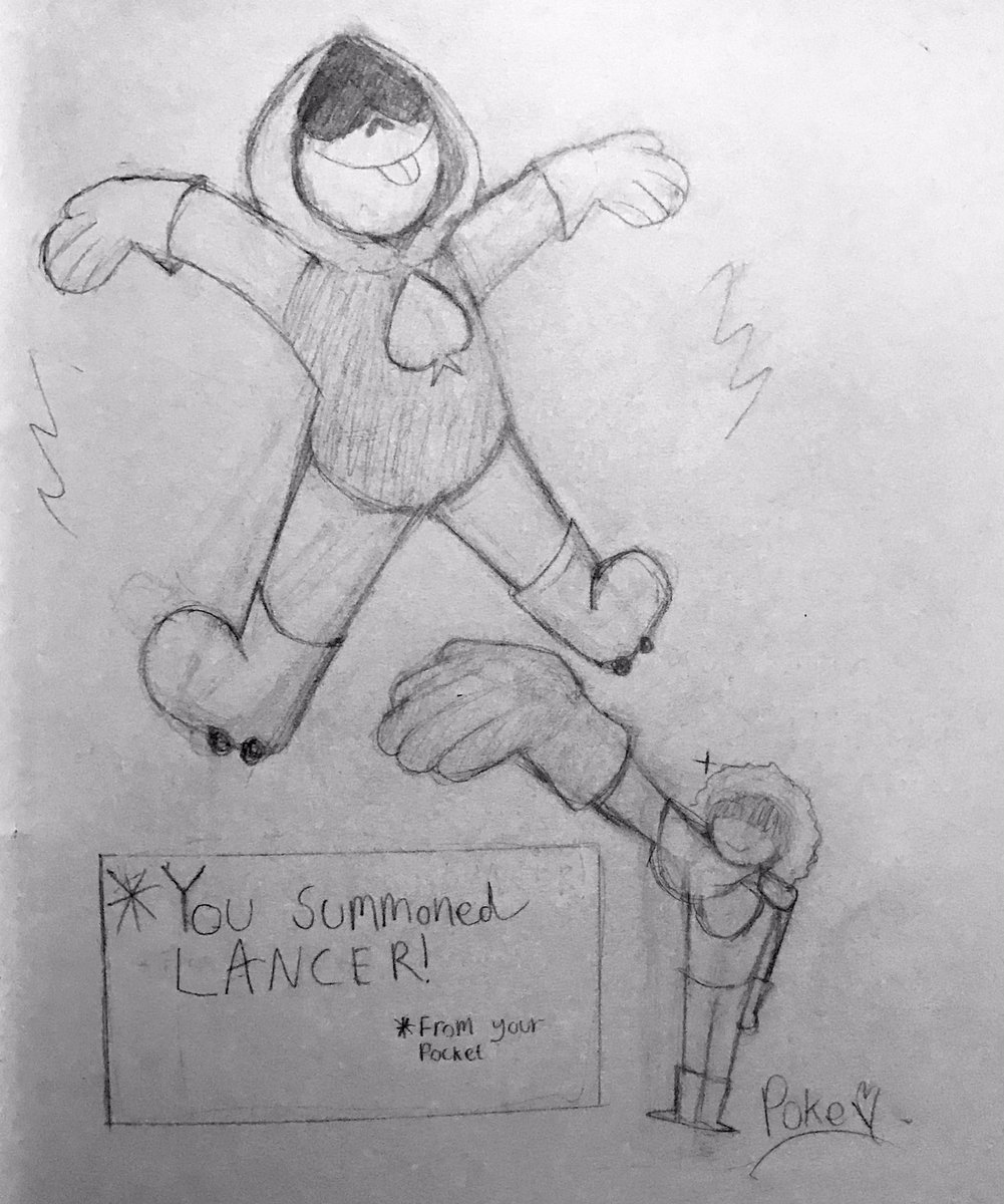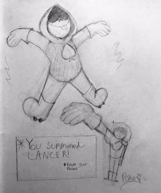 #Inktober day 22, Summon! You cannot comprehend the pure joy I felt when I realised I needed to get lancer from my pocket at that one point. Beloved boy!! #DeltaruneChapter2 #deltarunespoilers just in case