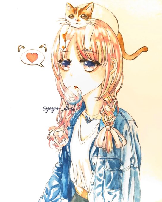 A adorable accessory of cat hat🐱 #anime #art #cat #cathat #character #characterart #cutecat #denimjacket #doodleart #drawing #kawaii #myart #創作 #自創 #原創 #繪畫 #繪圖 #绘 #塗鴉 #ペインティング #illust #illustration #myoc #originalart #watercolor #watercolorart #水彩