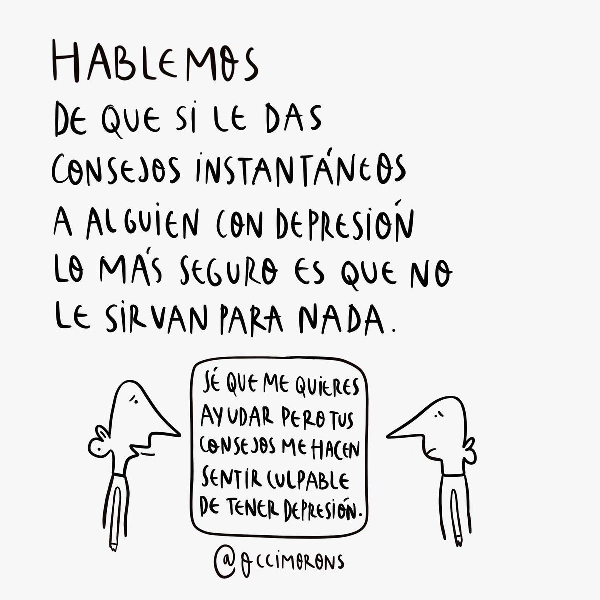 Hablemos y hablemos. No hagamos la vida aún más difícil a las personas que tienen depresión con nuestros comentarios e incomprensión. Escuchemos, empaticemos y acompañemos. #Depresion #DiaMundialContraLaDepresion