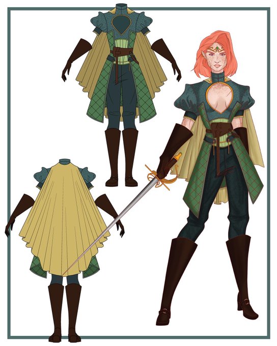Sheridan Luciana Urena Trudeau | This is Sherry. Inspired by Julie D’Aubigny. . #dnd #dungeonsanddragons #criticalrole #dungeonsanddragonsart #dndart #dndfanart #fashionflatlay #fashionsketch #designsketch #illustration #characterdesign #ocdesign #originalcharacter #fantasy