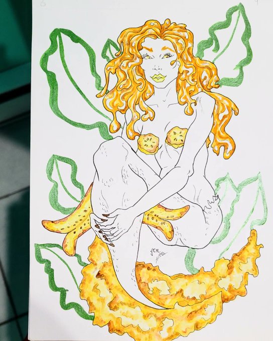 Here's #mermaywithdamsels 8, Fried Bananas! I tried to include multiple ways to cook these delicious things, along with caramel hair. 🧜♀️🍌 #mermay #mermay2022 #Mermaid #desserts #friedbanana #BANANA #gouache #fantasy #ArtistOnTwitter #traditionalart #pinupgirl #pinupart