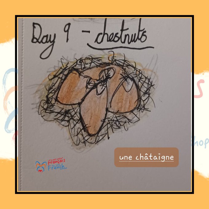 Et vous, qu'est-ce que vous faites avec les marrons en automne ? #1jour1mot #dessiner #apprendre #inktober2022
