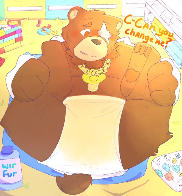 The big guy has a little problem <www> #babyfur #diaperfur #diaper #furry #furryart #ArtistOnTwitter