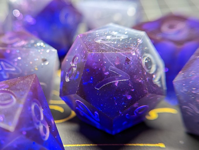 Pt1 -Made a Essek/Dunamancy set =D used some silver ink to make a mote of possibility in them!Quite happy with the result! #diceset #handmadedice #dice #dungeonsanddragons #ttrpg #resin #dicemaker #dicemaking #criticalrolefanart #CriticalRole #essekthelyss #essek #polyhedraldice